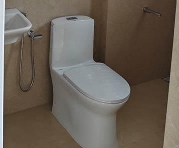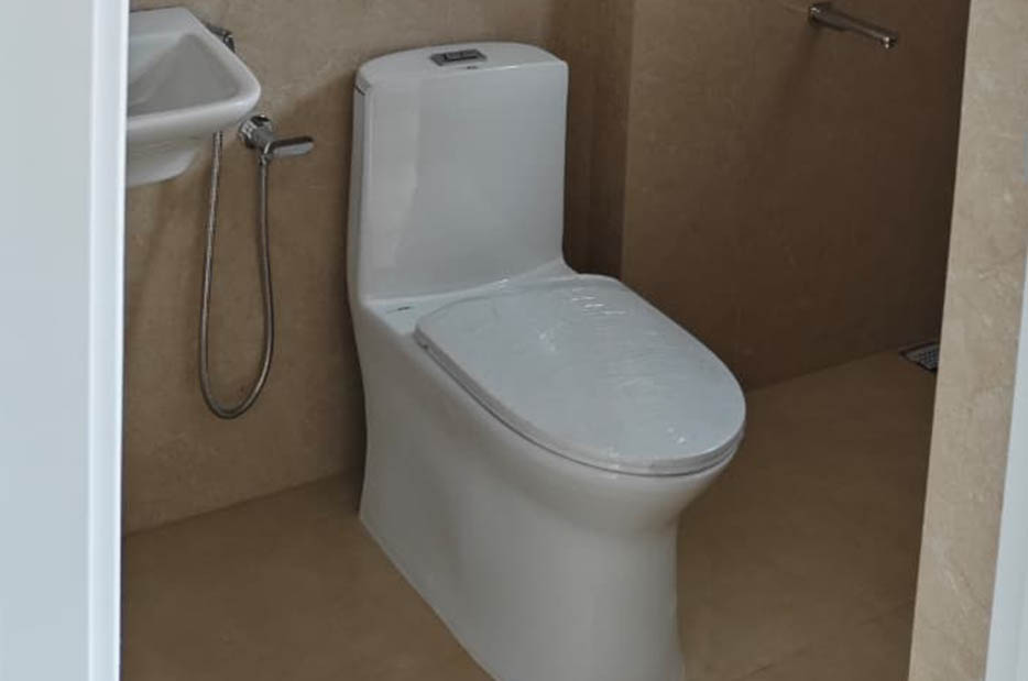 Ceramic tiles for floor, Ceramic tile wall cladding upto 6 feet. Concealed plumbing, white colour sanitary wares (Cera/Hindware/Jaquar or equivalent) and Chromium plated fittings. Provisions for geysers in all toilets.