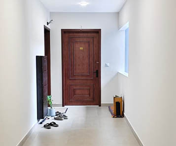 Elegantly designed and panelled front doors. Moulded/ flush shutter doors (Jacsons or equivalent) for bedrooms. All frames are made of good quality hardwood/WPC Frame. Architrave Frame with laminated Doors for Toilets.